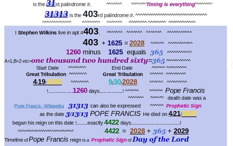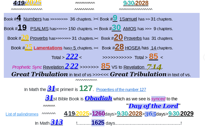 PI digit sequence has the Great Tribulation 4/19/2025 to 9/30/2028 + the One Year Day of the Lord to 9/30/2029 encoded in it + HAMAS-ISRAEL WAR Protest Prophetic syncs.